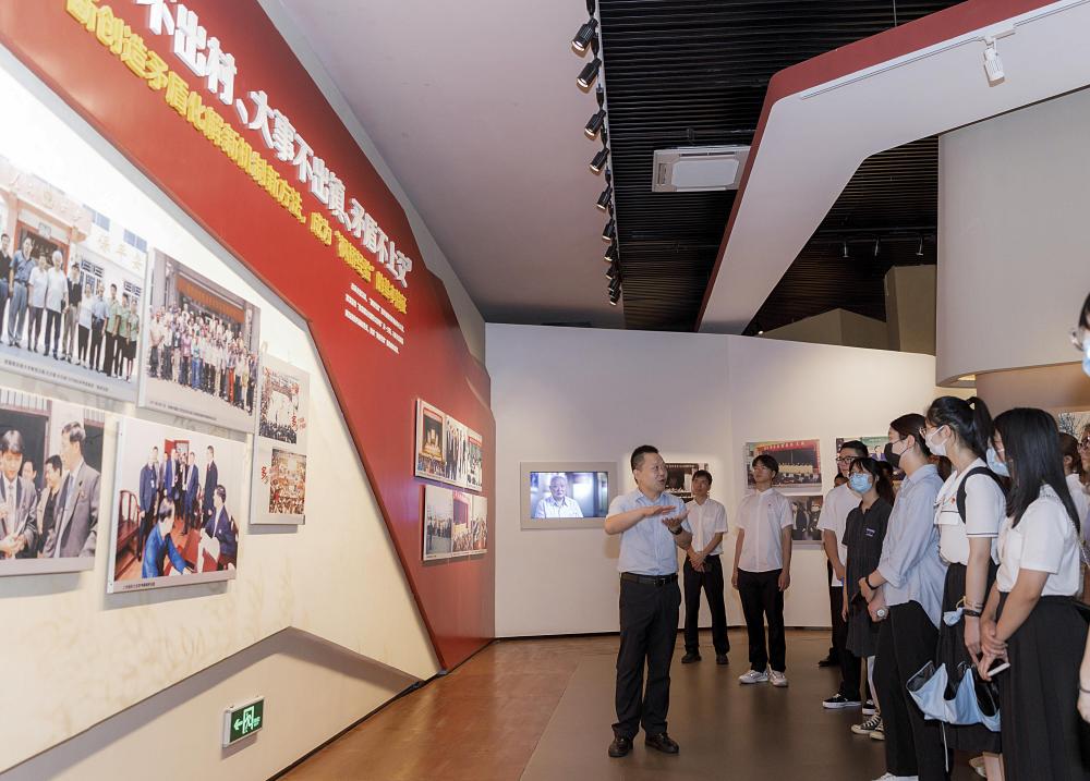 青年學(xué)子在浙江省諸暨市楓橋鎮(zhèn)的楓橋經(jīng)驗(yàn)陳列館參觀(guān)學(xué)習(xí)(2022年8月25日攝)。新華社記者 徐昱 攝