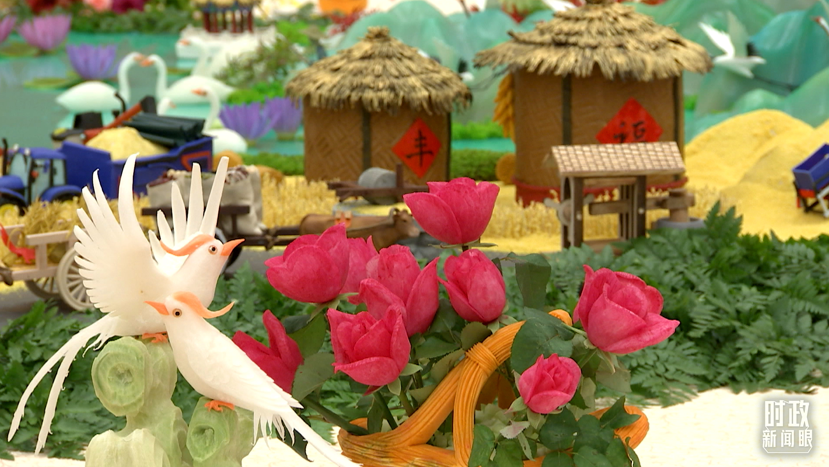 △人民大會(huì)堂宴會(huì)廳,華燈璀璨、鮮花綻放。