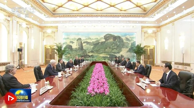 10月9日下午,國家主席習近平在人民大會堂會見美國國會參議院多數(shù)黨領袖舒默率領的美國國會參議院兩黨代表團。