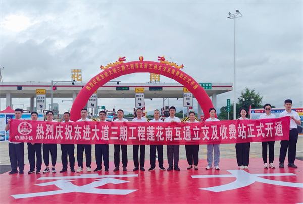 10月8日,由中鐵一局一公司承建的肇慶東進大道三期工程蓮花南互通立交及收費站正式開通運營。肇慶市副市長謝桂坤,中鐵一局副總經理郭秀春,中鐵一局一公司總經理韓勝等相關領導以及肇慶市政府有關部門、市交通集團、設計、監(jiān)理和項目參建人員現場共同見證蓮花南互通立交及收費站開通。