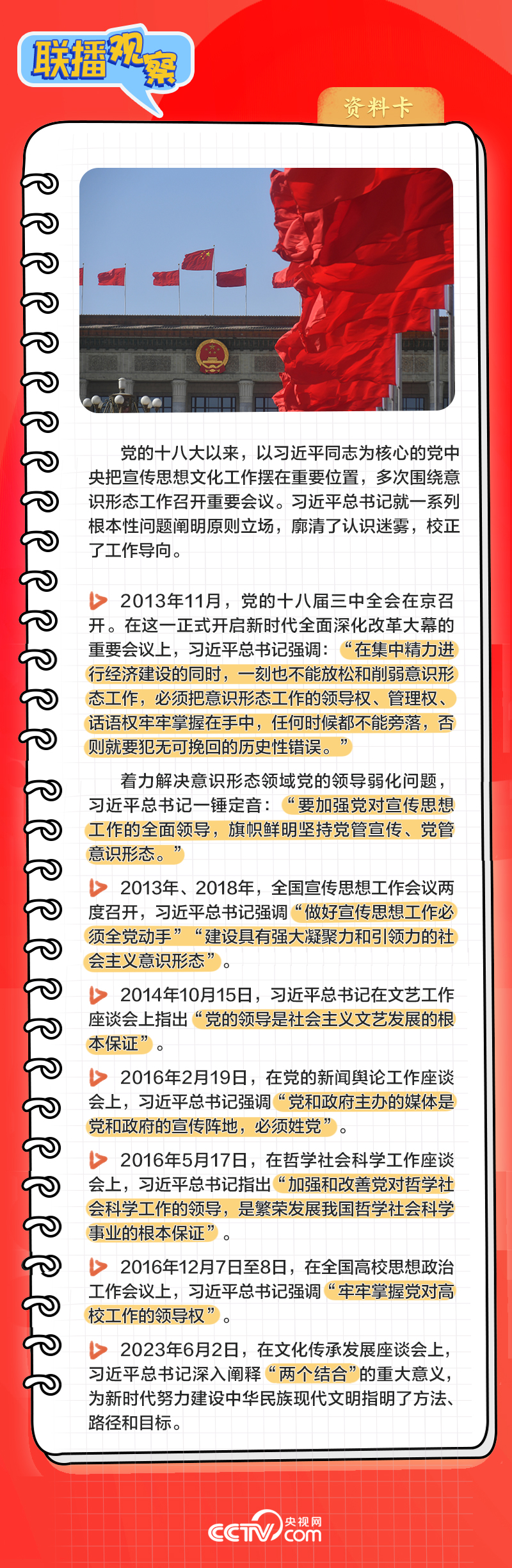 聯(lián)播+宣傳思想文化工作事關(guān)黨的前途命運(yùn),事關(guān)國家長(zhǎng)治久安,事關(guān)民族凝聚力和向心力,是一項(xiàng)極端重要的工作。