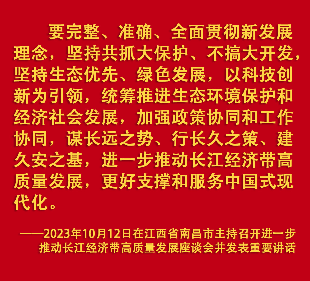 10月12日,中共中央總書記、國家主席、中央軍委主席習(xí)近平在江西省南昌市主持召開進一步推動長江經(jīng)濟帶高質(zhì)量發(fā)展座談會并發(fā)表重要講話。