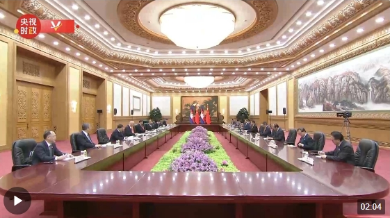 10月19日上午,國(guó)家主席習(xí)近平在人民大會(huì)堂會(huì)見(jiàn)來(lái)華出席第三屆“一帶一路”國(guó)際合作高峰論壇的柬埔寨首相洪瑪奈。