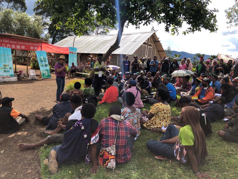 △2020年12月15日,中國專家在巴布亞新幾內(nèi)亞東高地省中國援助巴新菌草和旱稻技術(shù)項目第9期培訓(xùn)班上授課。