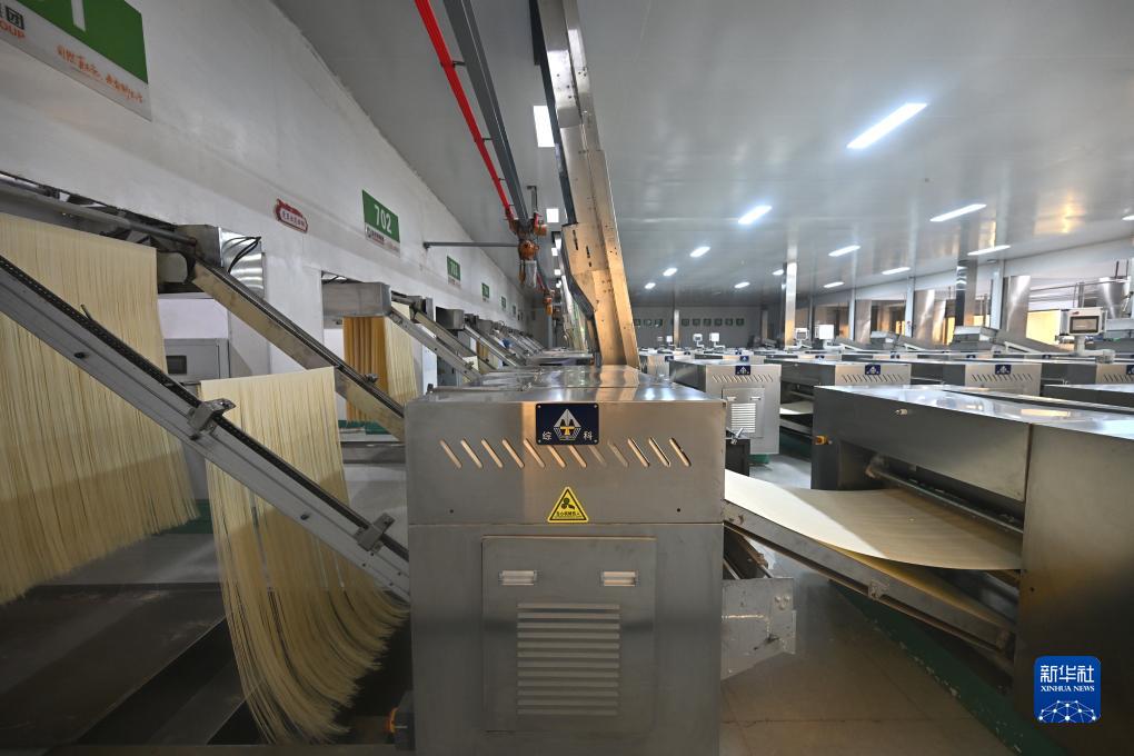 這是阿拉山口綜合保稅區(qū)內的金沙河面業(yè)有限責任公司的面條生產(chǎn)車間(11月5日攝)。新華社記者 趙晨捷 攝
