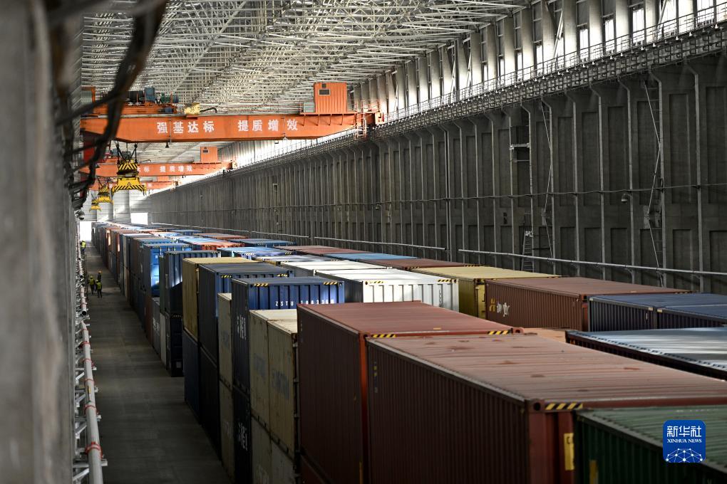 這是中國鐵路烏魯木齊局集團有限公司阿拉山口站換23集裝箱換裝庫(11月4日攝)。新華社記者 李鑫 攝