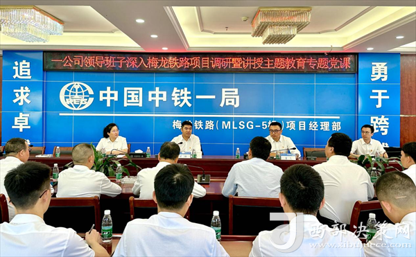 近日,中鐵一局一公司總經(jīng)理韓勝到梅龍鐵路(MLSG-5標(biāo))項(xiàng)目調(diào)研,并為黨員講授“學(xué)思踐悟強(qiáng)思想,固本強(qiáng)基謀發(fā)展”主題教育專題黨課。項(xiàng)目班子成員、黨員共計(jì)30余人參加。