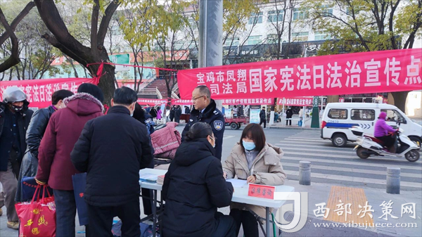 西部決策網(wǎng)訊(記者劉玉 韓宗憲)12月4日上午,寶雞市鳳翔區(qū)委普法辦、區(qū)司法局組織區(qū)級(jí)各部門、各企事業(yè)單位在城區(qū)主街道開展了以“大力弘揚(yáng)憲法精神,建設(shè)社會(huì)主義法治文化”為主題的國家憲法日集中宣傳活動(dòng),鳳翔區(qū)人大常委會(huì)副主任、總工會(huì)主席王曉鋒,副區(qū)長(zhǎng)李忠,政協(xié)副主席王紅玲以及區(qū)司法局主要負(fù)責(zé)同志檢查指導(dǎo)宣傳活動(dòng)。