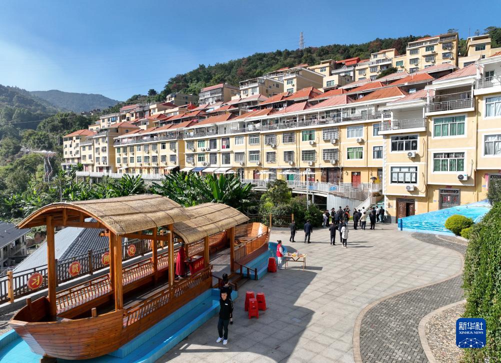 這是2023年11月19日拍攝的福安市下岐村漁民廣場(chǎng)和周邊的樓房(無(wú)人機(jī)照片)。新華社記者 林善傳 攝