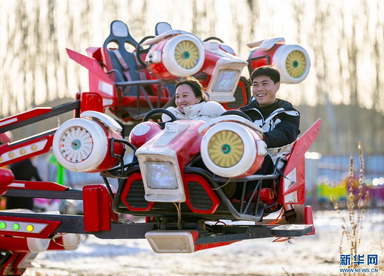 12月7日,游客在呼和浩特市玉泉區(qū)大庫倫村“冰雪大世界”內(nèi)體驗“旋轉(zhuǎn)飛機(jī)”項目。新華網(wǎng)發(fā)(丁根厚 攝)