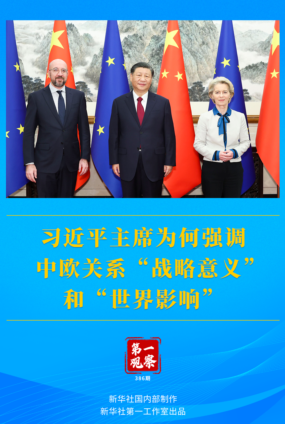 會(huì)見(jiàn)中,習(xí)近平主席指出,在當(dāng)前動(dòng)蕩加劇的國(guó)際形勢(shì)下,中歐關(guān)系具有戰(zhàn)略意義和世界影響,關(guān)乎世界和平、穩(wěn)定、繁榮。