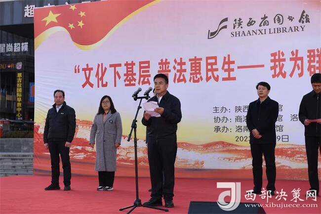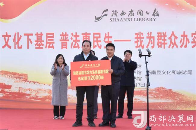 西部決策網訊 12月9日,由陜西省圖書館主辦,商洛市圖書館、洛南縣文化和旅游局、縣圖書館承辦的“文化下基層 普法惠民生——我為群眾辦實事”主題活動在洛南縣舉行。陜西省圖書館黨委書記、館長周云岳,中共洛南縣委常委、宣傳部長郭民成,陜西省律師協(xié)會民事專業(yè)委員會主任劉曉恩,商洛市圖書館館長彭萍莉,洛南縣文化和旅游局局長劉濤,縣司法局副局長楊娟,縣圖書館館長楊新鋒等有關領導,陜西省圖書館第三黨支部黨員代表及社會各界等300余人參加?;顒訂觾x式由劉濤主持。