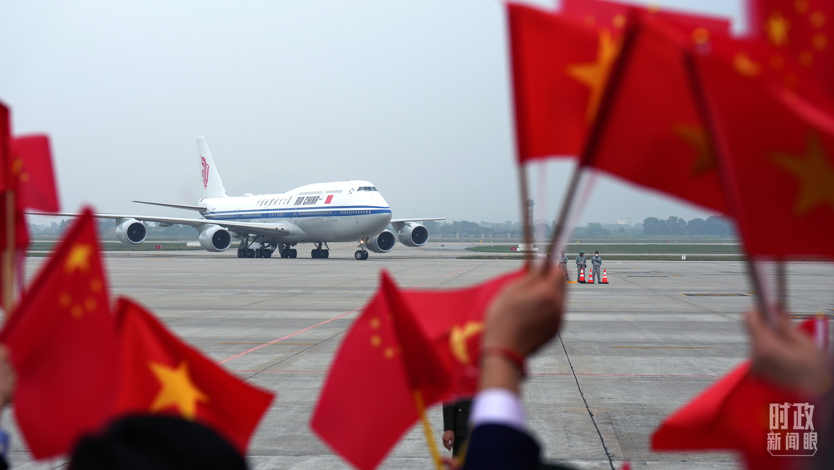 △習近平乘專機抵達越南河內(nèi)。(總臺國廣記者李晉拍攝)
