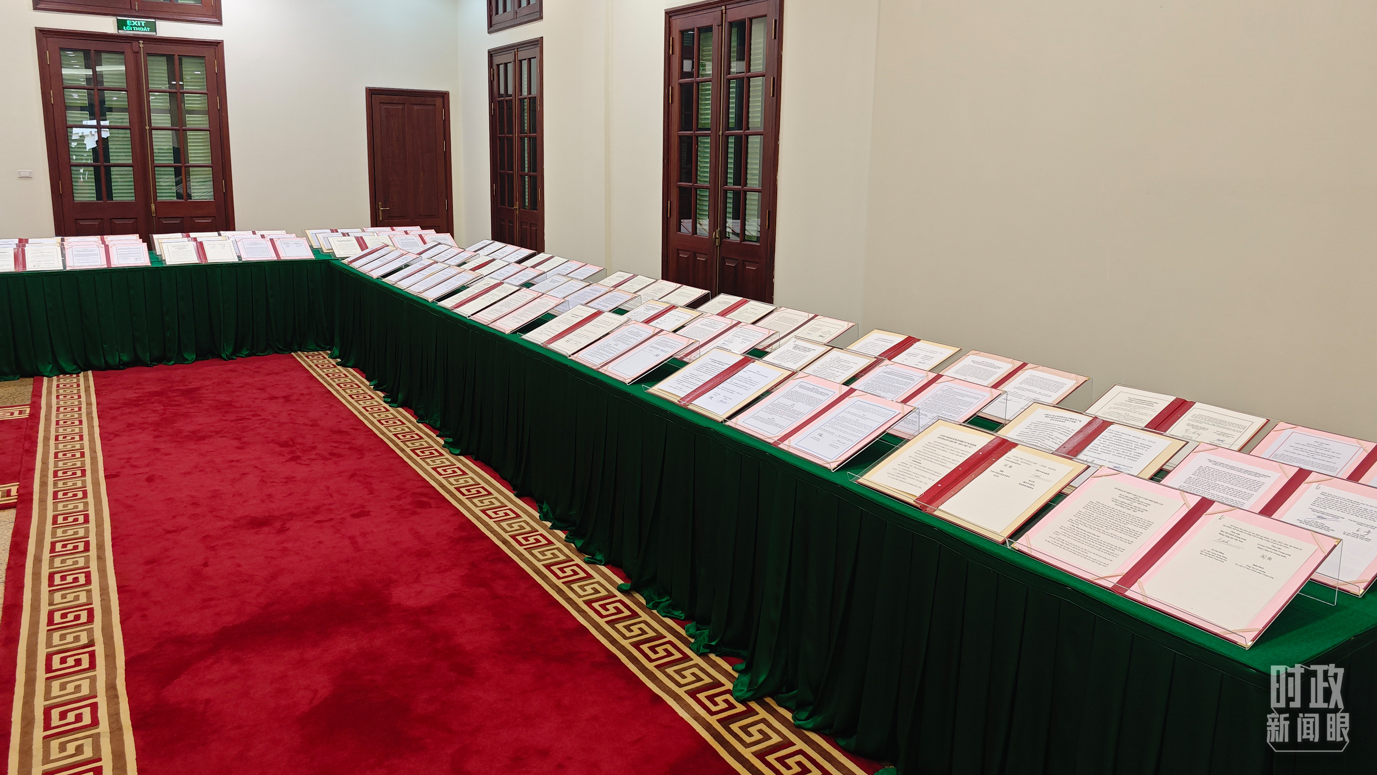 △會談后,兩黨總書記共同見證雙方簽署的雙邊合作文件展示,涵蓋共建“一帶一路”等30多個領域。(總臺央視記者耿小龍拍攝)