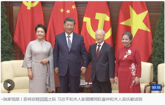 12月13日下午,在結(jié)束對越南進行國事訪問即將啟程回國之際,習近平夫婦同越共中央總書記阮富仲夫婦話別。一段對話,余韻悠長。