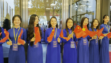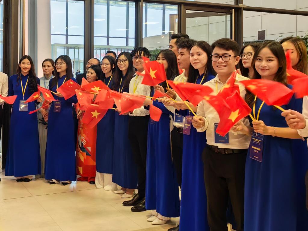 習近平總書記和夫人彭麗媛抵達國家會議中心時,受到越方青年代表熱烈歡迎。