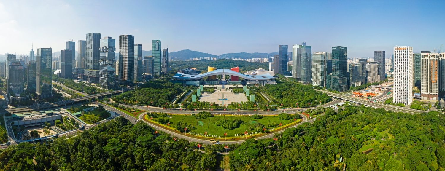 這是在廣東省深圳市拍攝的深圳市民中心和蓮花山公園一線(2020年10月2日攝,無人機(jī)照片)。新華社記者 梁旭 攝