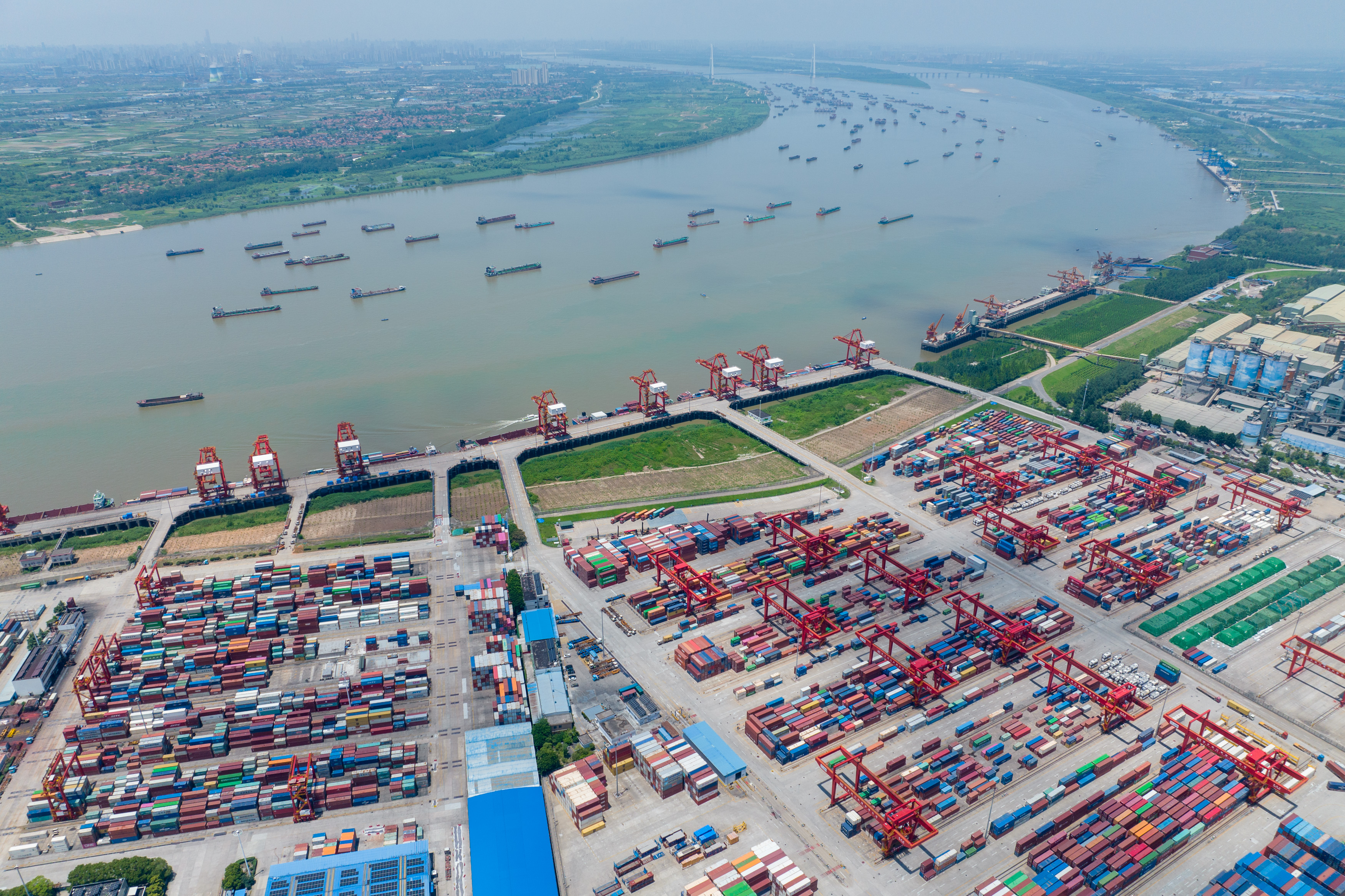 武漢陽邏港一期碼頭(2023年7月5日攝,無人機(jī)照片)。新華社記者 伍志尊 攝