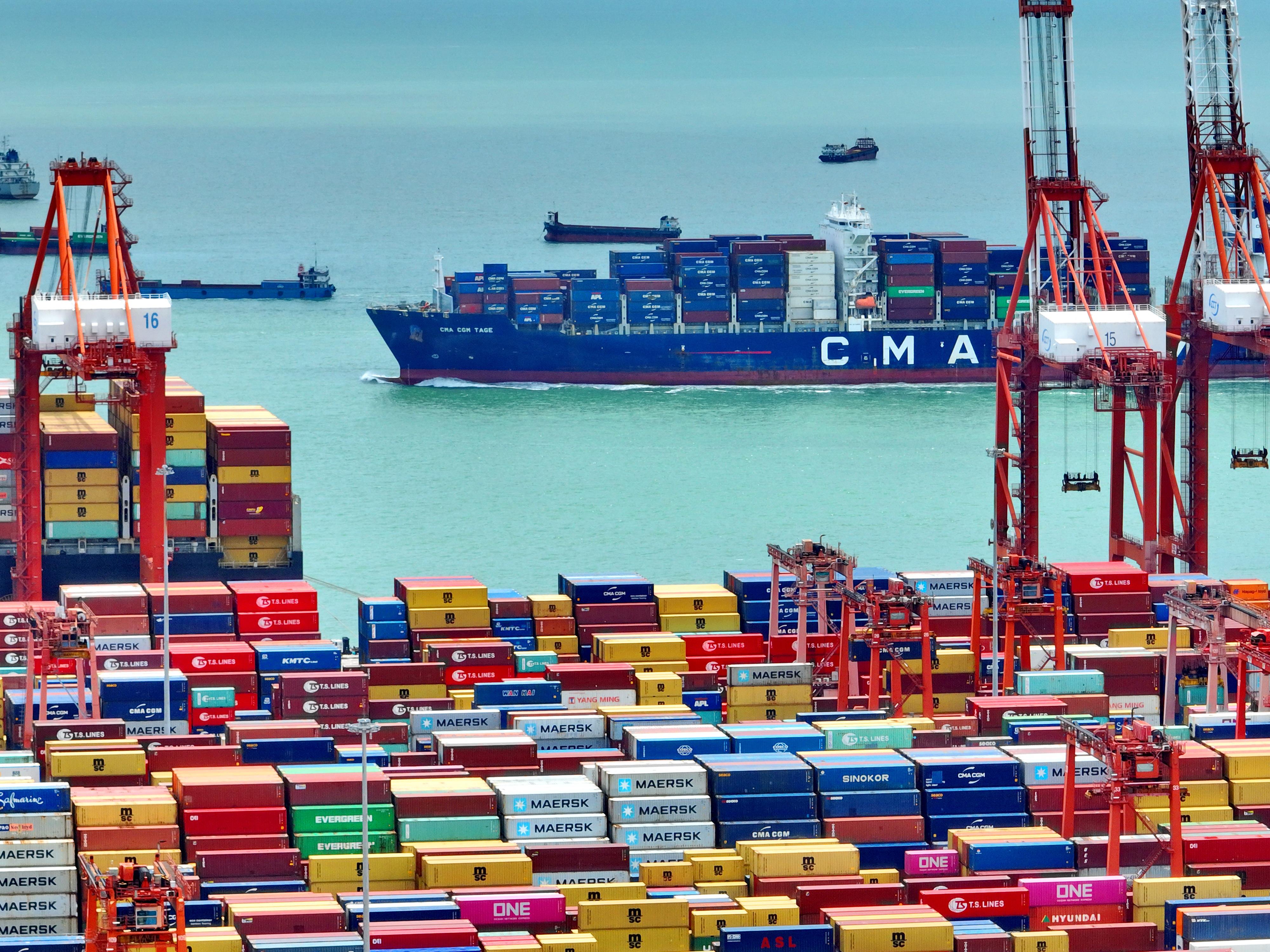 △2023年6月8日,廣東深圳南山區(qū)蛇口集裝箱碼頭,一派繁忙的作業(yè)景象。