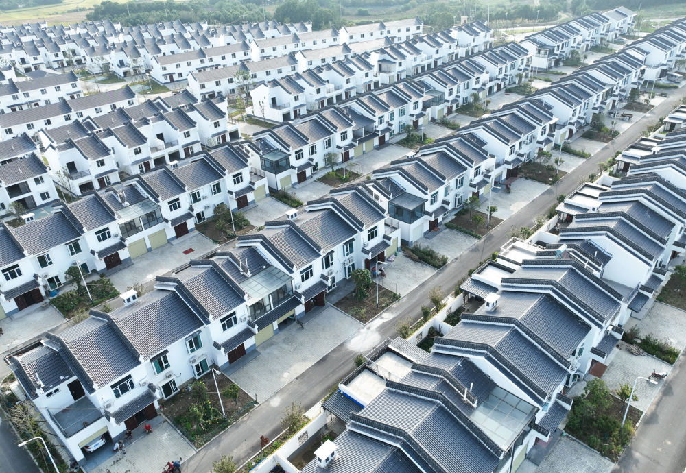 ↑建設(shè)完工的湖北省沙洋縣沈集鎮(zhèn)帥店新社區(qū)(9月7日攝,無人機照片)。沙洋縣沈集鎮(zhèn)全域國土綜合整治項目著眼于耕地碎片化、空間布局無序化、資源利用低效化、生態(tài)質(zhì)量退化等問題,打造集約高效的生產(chǎn)空間、宜居適度的生活空間、山清水秀的生態(tài)空間。