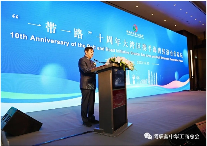 迪拜時間2023年12月20日, “一帶一路”十周年大灣區(qū)攜手海灣經(jīng)濟合作論壇在迪拜成功舉辦。中國全國政協(xié)常務(wù)委員、香港中華總商會會長、粵港澳大灣區(qū)企業(yè)家聯(lián)盟主席蔡冠深博士、中國駐迪拜總領(lǐng)館總領(lǐng)事李旭航閣下、第十三屆全國政協(xié)外事委員會副主任、察哈爾學會會長韓方明博士、沙迦酋長國執(zhí)委會成員、政府關(guān)系部主任謝赫·法希姆·阿勒卡西米親王、中國中小企業(yè)協(xié)會專職副會長朱玉、中資企業(yè)機構(gòu)負責人、華僑社團代表、媒體代表及阿聯(lián)酋政、商界友好人士近400人出席活動。