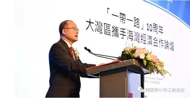中國全國政協(xié)常務(wù)委員、香港中華總商會會長、粵港澳大灣區(qū)企業(yè)家聯(lián)盟主席蔡冠深博士在主旨演講中指出,今年是共建“一帶一路”倡議提出十周年。中東地區(qū)是推進“一帶一路”合作建設(shè)的重要節(jié)點。香港作為國際都會,在推動“一帶一路”建設(shè)擔當參與者、促成者和受益者角色。蔡冠深博士表示,粵港澳大灣區(qū)是阿聯(lián)酋企業(yè)投資中國內(nèi)地市場的重要切入點。同時,香港可協(xié)同大灣區(qū)企業(yè)進駐阿聯(lián)酋科研及創(chuàng)新園,與阿聯(lián)酋聯(lián)合開發(fā)高科技項目,進行產(chǎn)業(yè)布局,協(xié)同推動阿聯(lián)酋產(chǎn)業(yè)邁向高端化、智能化、綠色化發(fā)展。大灣區(qū)企業(yè)更可把高端科研成果轉(zhuǎn)化成落地商品,為阿聯(lián)酋提供更多、更實用的創(chuàng)新科技產(chǎn)品。