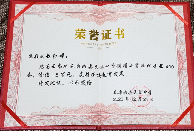 趙紅娣理事長(zhǎng)此次為麻栗坡縣民族中學(xué)的師生捐贈(zèng)了400臺(tái)“小蜜蜂”擴(kuò)音器設(shè)備,共價(jià)值1.5萬(wàn)元。這些設(shè)備能夠?yàn)閷W(xué)生提供更加清晰、逼真的聲音體驗(yàn),改善學(xué)校的教學(xué)條件和學(xué)生的學(xué)習(xí)環(huán)境。