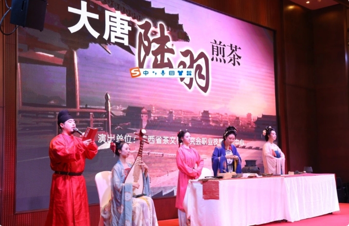 活動(dòng)在陜西省茶文化研究會(huì)職業(yè)技能培訓(xùn)中心帶來(lái)的《歡樂(lè)茶市——大唐煎茶茶藝表演》中開(kāi)場(chǎng),東裕公司茶藝師帶來(lái)茶藝表演《東裕巴山仙子》。