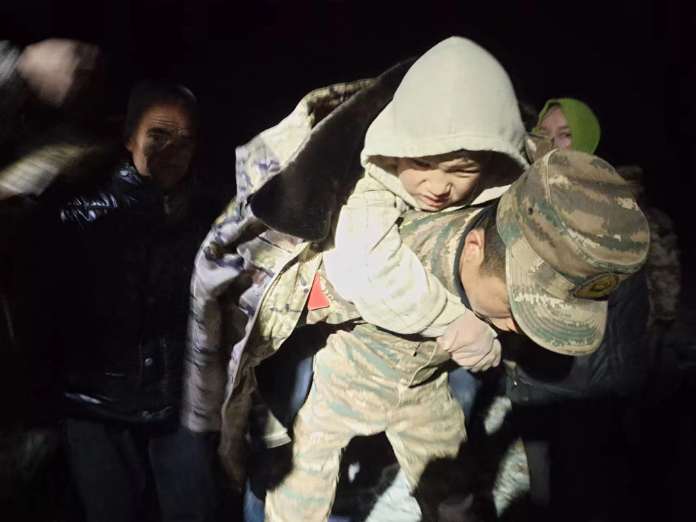 2023年12月19日,武警甘肅總隊臨夏支隊官兵在甘肅省臨夏回族自治州積石山縣劉集鄉(xiāng)陽屲村展開救援。新華社發(fā)(侯崇慧 攝)