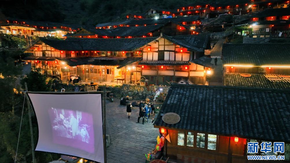 林坑村夜景風光。新華網(wǎng)發(fā)