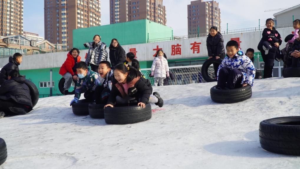 2023年12月31日,沈陽(yáng)市渾南區(qū)第九小學(xué)學(xué)生在玩雪。(學(xué)校供圖)