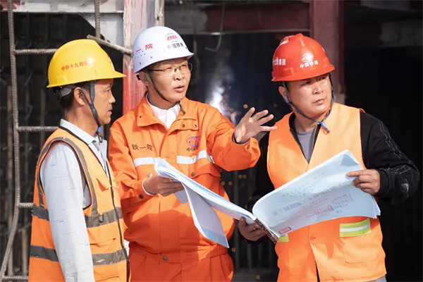 李凌志(中)和引漢濟渭團隊在工地現(xiàn)場。圖片來自中鐵第一勘察設計院