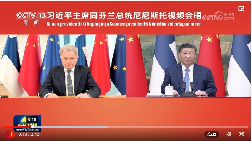 1月10日下午,國(guó)家主席習(xí)近平同芬蘭總統(tǒng)尼尼斯托舉行視頻會(huì)晤。