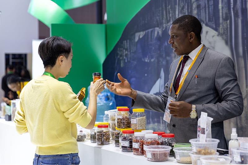 △2023年11月7日,在進(jìn)博會(huì)國家館尼日利亞館,展商介紹尼日利亞產(chǎn)品。