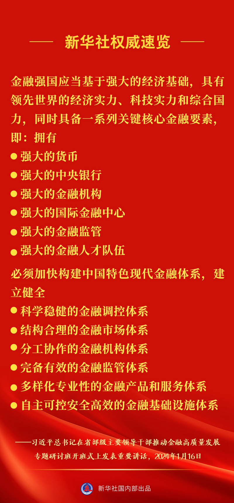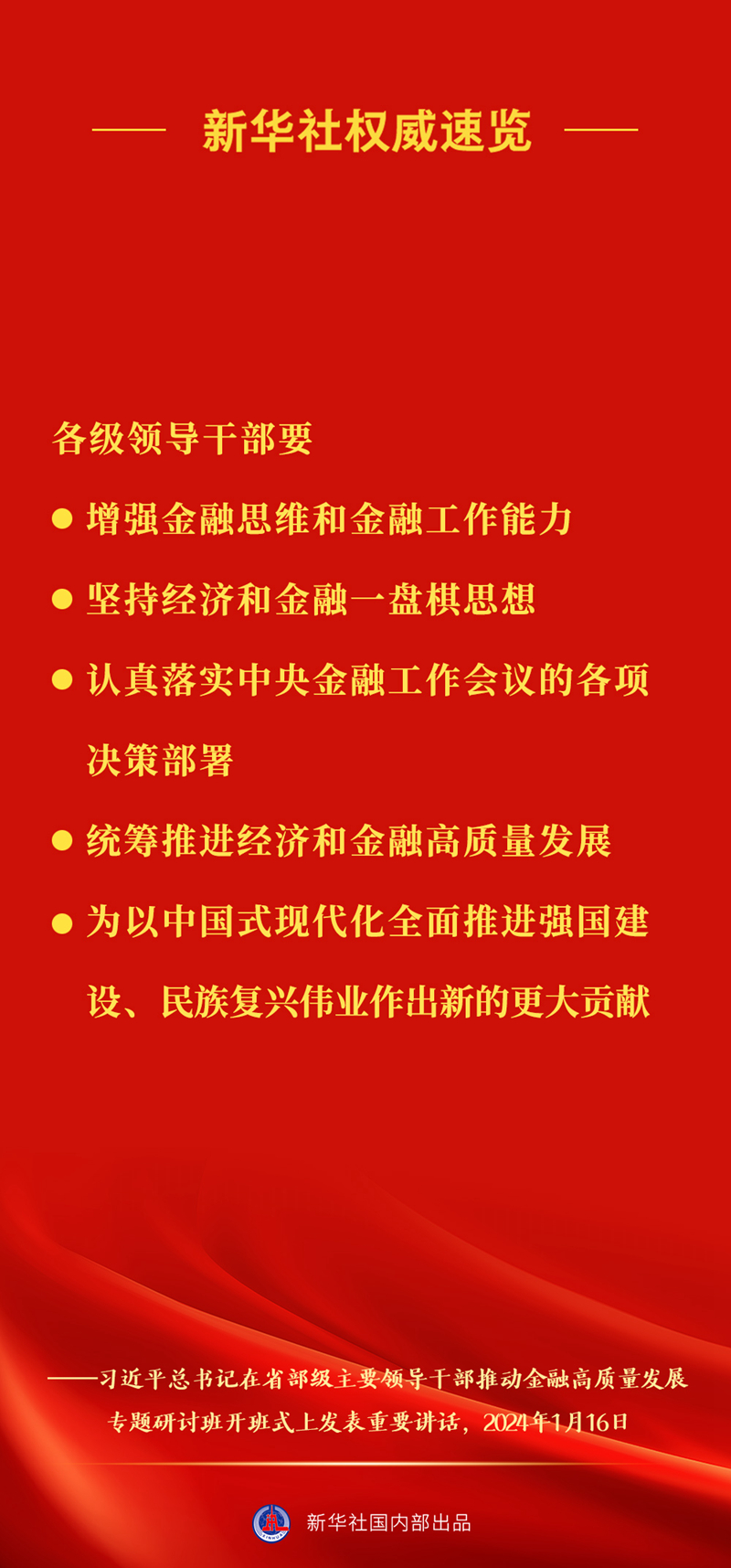 新華社權(quán)威速覽 | 習(xí)近平總書記在推動(dòng)金融高質(zhì)量發(fā)展專題研討班上重要講話要點(diǎn)