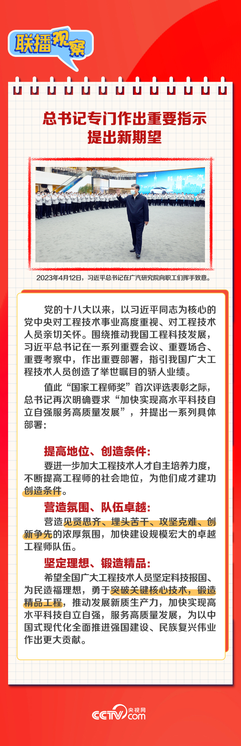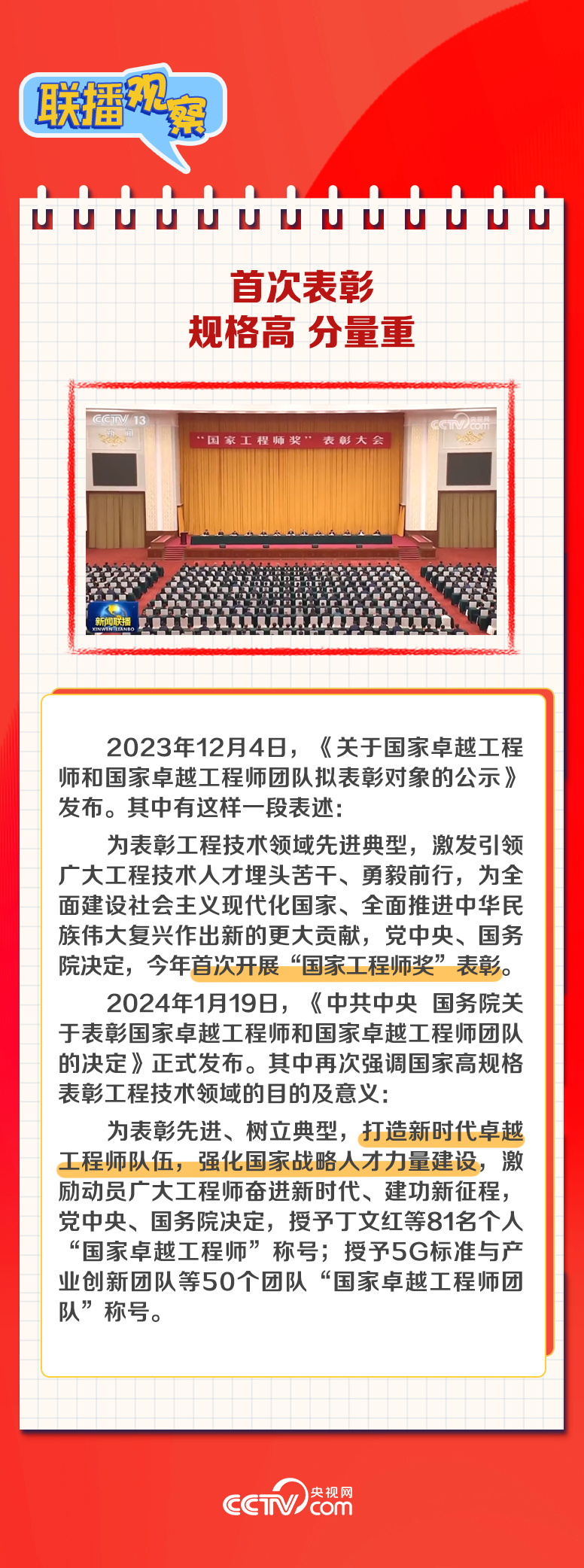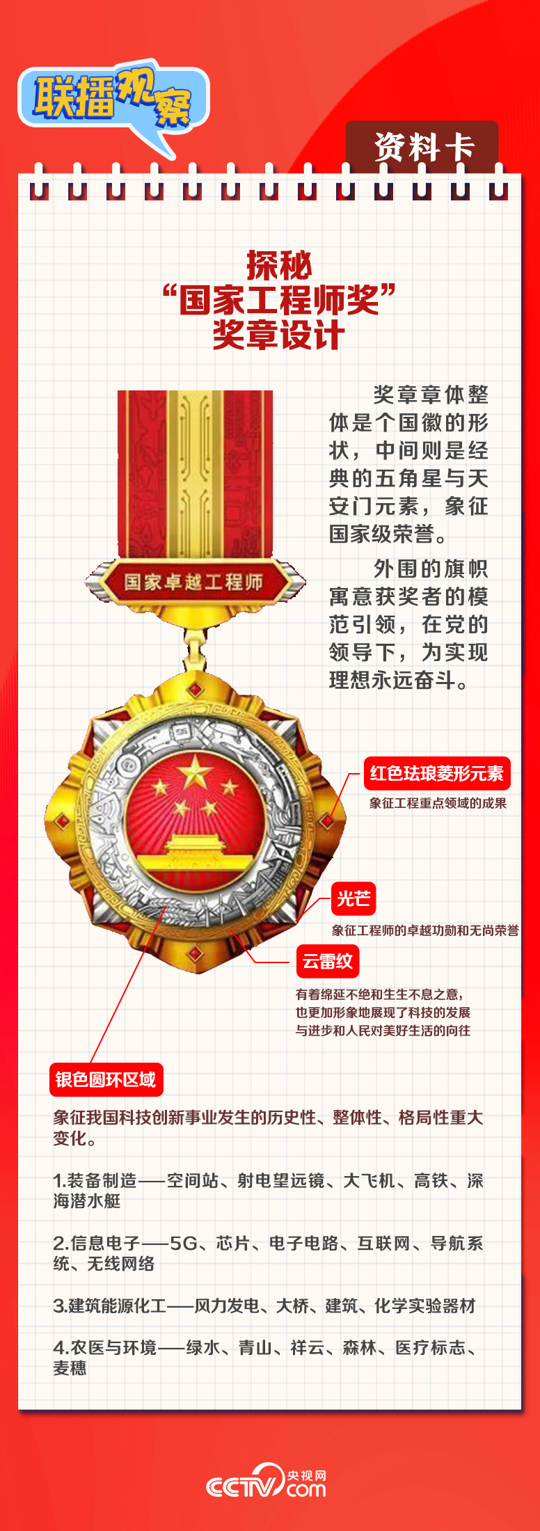總書記對全國廣大工程技術(shù)人員提出哪些希望?獲獎者和獲獎團隊因何上榜?“國家工程師獎”獎章細節(jié)中藏著哪些奧秘?央視網(wǎng)《聯(lián)播觀察》帶您讀懂國家最高規(guī)格表彰工程技術(shù)領(lǐng)域先進典型背后的深意。