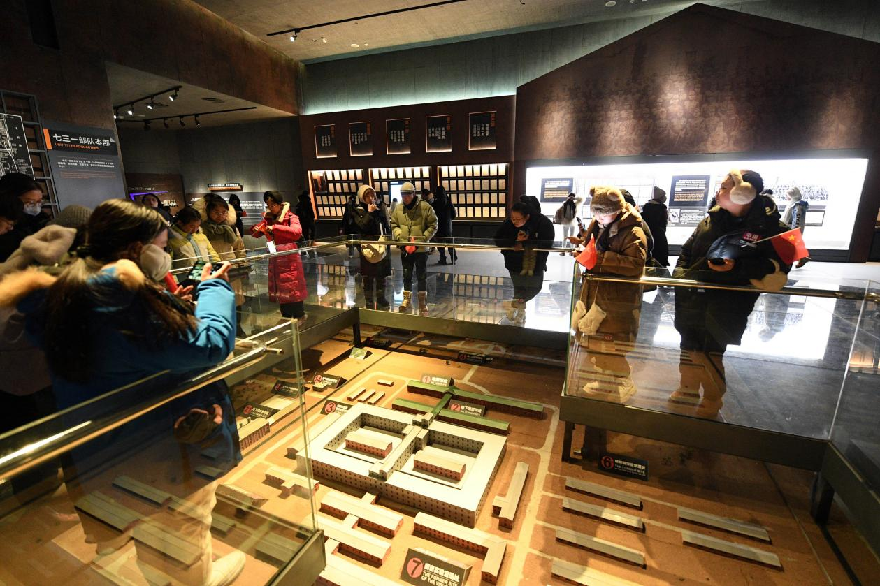 聯播+ 元月的哈爾濱,大地鶴雪,滴水成冰。嚴寒之中,大批游客在侵華日軍第七三一部隊罪證陳列館前排起了長隊。
