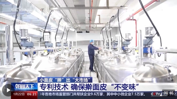 陜西雜八得食品有限公司生產(chǎn)總監(jiān) 孫燕博:創(chuàng)新點(diǎn)是可以控制發(fā)酵時(shí)間、發(fā)酵溫度。我們要求8個(gè)小時(shí)發(fā)酵好,這是通過設(shè)備工藝測算出來的最佳發(fā)酵時(shí)間。通過我們這個(gè)發(fā)酵的專利技術(shù),保證了搟面皮的口味正宗地道,保證大家能吃到兒時(shí)的味道,家鄉(xiāng)的味道。