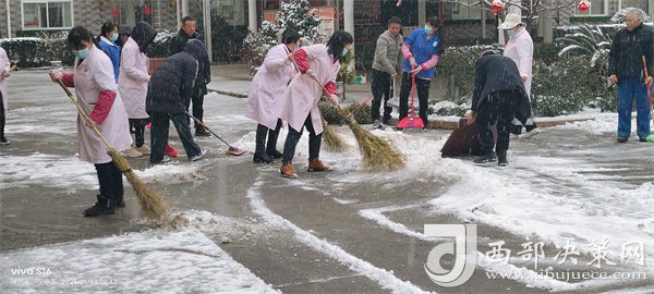 大雪后的早晨,氣溫較低,容易結(jié)冰,保障老人們的行走安全十分重要。雖然隆冬大雪天氣,但整個敬老院里依然暖意濃濃,老人們其樂融融,倍感溫暖和幸福。