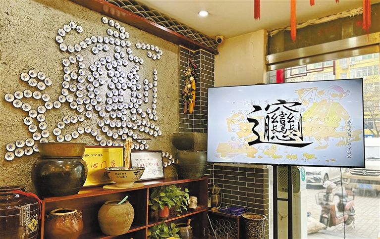 咸陽(yáng)市鴻漸biangbiang面館展示的“biang”字裝飾。 記者 琚鵬飛攝