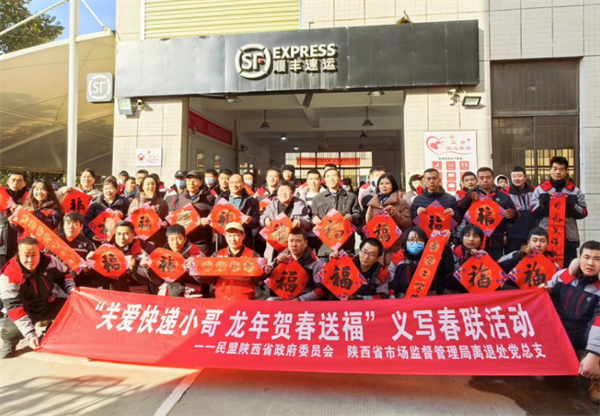 歡聲笑語辭舊歲,暖意融融迎新春。2024年1月23日,民盟省政府委員會攜手省市場監(jiān)管局離退處黨總支走進高新科技八路順豐速運營業(yè)點開展“關(guān)愛快遞小哥 龍年賀春送福”義寫春聯(lián)活動,為快遞小哥送上文化年貨。
