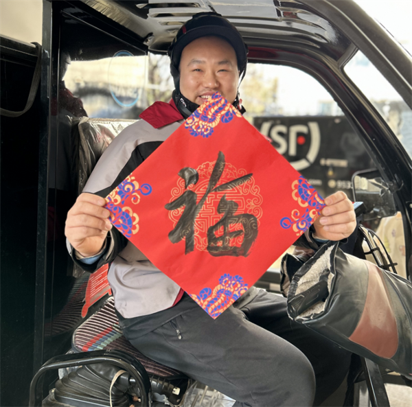 活動中書法家們通過寫春聯(lián)、寫福字的方式,為辛勤奮斗、守護美好生活“最后一公里”的一線快遞小哥們送來有溫度、有分量的“文化年貨”,送上節(jié)日的祝福和問候。讓春節(jié)堅守崗位的快遞小哥們在工作地感受到來自社會的關(guān)心關(guān)愛和濃濃的節(jié)日氛圍;讓返鄉(xiāng)過年的小哥們把書法家們親筆書寫的福字和福氣帶回家,把溫暖快遞回家。