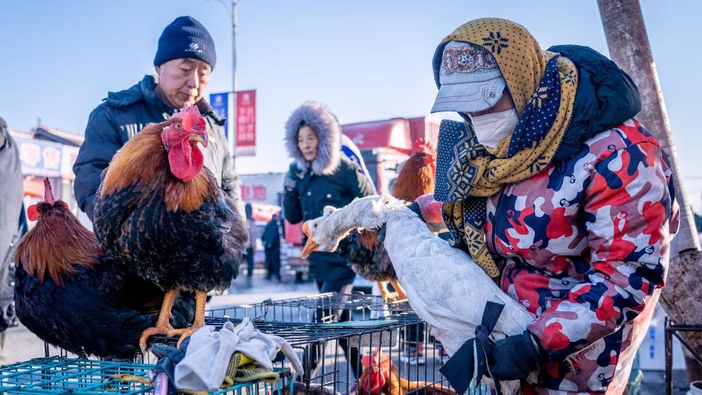 “凍梨凍柿子嘞,嘎嘎甜,不甜不要錢”“冰糖心蘋果賤賣嘍,3斤10塊”“排骨18塊1斤,棒骨8塊1斤”……臨近年關(guān),吉林省長(zhǎng)春市近郊的卡倫大集上,人群摩肩接踵,叫賣聲此起彼伏。這個(gè)中國(guó)東北農(nóng)村集市年味漸濃。