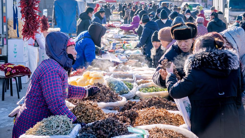 中國(guó)東北農(nóng)村集市年味漸濃
