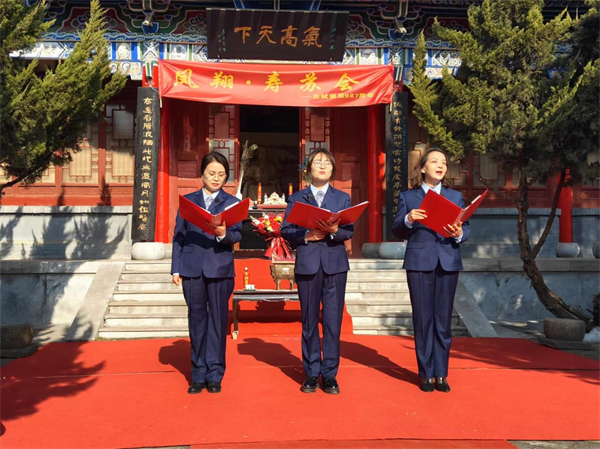寶雞市蘇軾研究會(huì)常務(wù)副會(huì)長(zhǎng)、鳳翔東湖管理處主任齊會(huì)斌致辭,寶雞市蘇軾文化研究會(huì)顧問、鳳翔區(qū)作家協(xié)會(huì)主席魯旭宣讀壽辭。