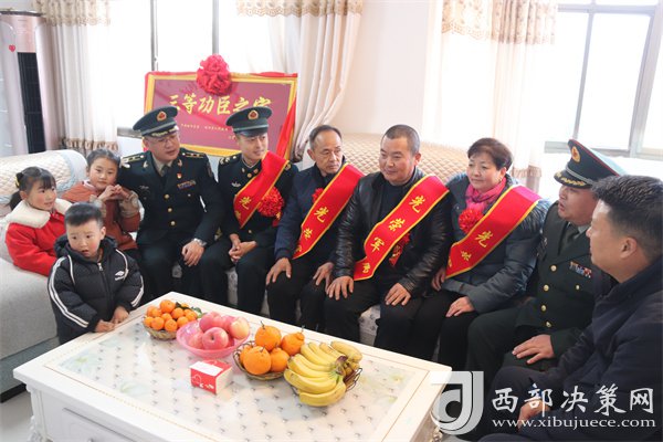 西部決策網(wǎng)訊 律回歲晚,年味漸濃。在陜西省漢中市略陽(yáng)縣徐家坪鎮(zhèn)小山村張家莊,幾位身著軍裝的軍人手捧喜報(bào),抬著三等功臣之家的牌匾,在人群中格外的顯眼。由縣人武部,退役軍人事務(wù)局,鎮(zhèn)村領(lǐng)導(dǎo)組成的隊(duì)伍帶著新年的問(wèn)候和祝福,為榮獲三等功的張俊飛家庭送來(lái)立功喜報(bào)、三等功臣之家的牌匾和慰問(wèn)金,張俊飛所在的部隊(duì),委派專人到地方上聯(lián)合當(dāng)?shù)夭块T(mén)將這份殊榮親自送到張俊飛的家里,給小山村增添無(wú)限的喜慶和榮光。