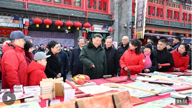 春節(jié)前夕,習(xí)近平總書(shū)記在天津考察調(diào)研,看望慰問(wèn)基層干部群眾。2月1日上午,他首先來(lái)到西青區(qū)辛口鎮(zhèn)第六埠村,實(shí)地了解去年洪澇災(zāi)害后當(dāng)?shù)剞r(nóng)業(yè)生產(chǎn)恢復(fù)等情況,看望受災(zāi)群眾。當(dāng)天下午,他來(lái)到天津古文化街,察看節(jié)日市場(chǎng)供應(yīng)和歷史文化街區(qū)保護(hù)利用等情況。
