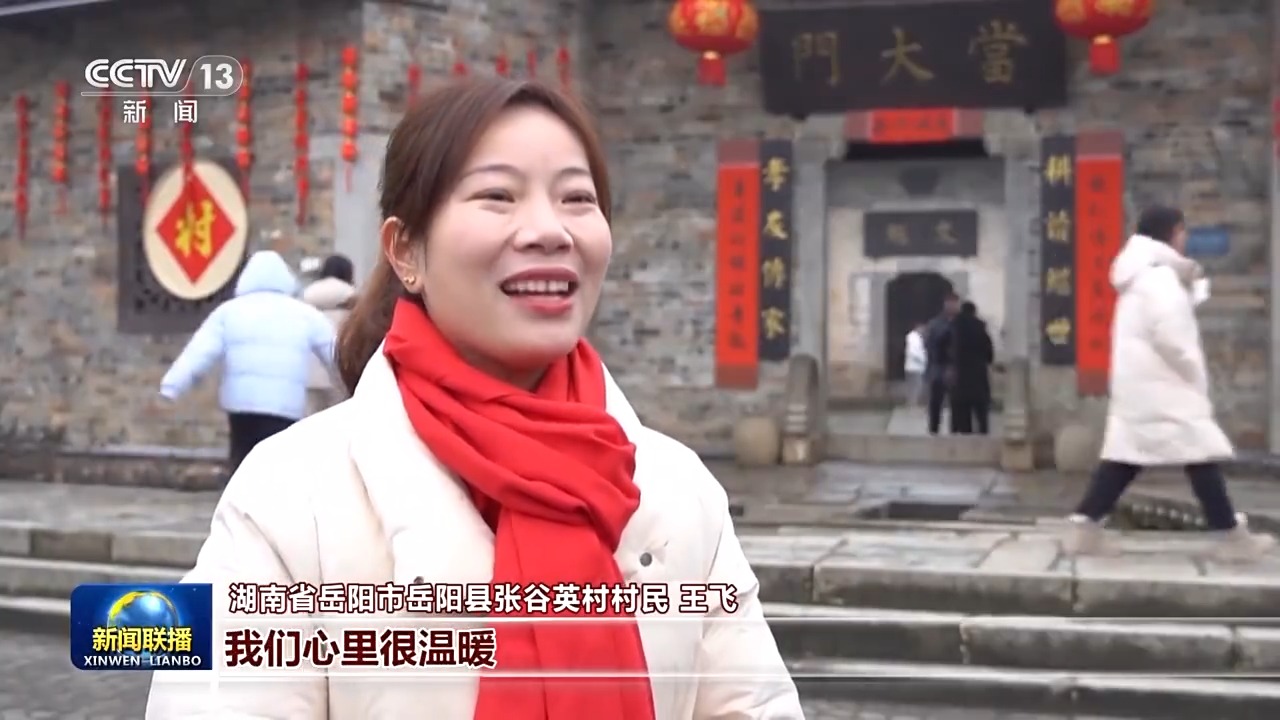 湖南省岳陽(yáng)市岳陽(yáng)縣張谷英村村民 王飛:總書(shū)記關(guān)心我們基層群眾年過(guò)得好不好,我們心里很溫暖,現(xiàn)在游客都愿意來(lái),感受我們村的古韻和文化。對(duì)于來(lái)年的日子,我們大家都充滿信心,把日子過(guò)得更好。