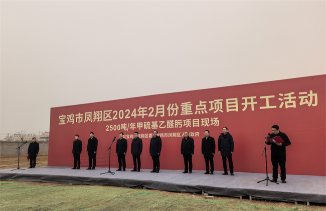 西部決策網(wǎng)訊(記者劉玉 韓宗憲 通訊員 孫艷萍)神州春暖山河秀,祥鳳騰飛日月新。2月18日,寶雞市鳳翔區(qū)2024年2月份年產(chǎn)2500噸甲硫基乙醛肟重點(diǎn)項(xiàng)目在鳳翔高新區(qū)長(zhǎng)青工業(yè)園集中開工。鳳翔區(qū)委書記王宏強(qiáng)下達(dá)開工令,鳳翔區(qū)人大常委會(huì)主任魯立,鳳翔區(qū)政協(xié)主席蒲儀明等區(qū)級(jí)領(lǐng)導(dǎo)參加開工儀式,鳳翔高新管委會(huì)副主任趙紅軍和項(xiàng)目單位負(fù)責(zé)人分別作了表態(tài)發(fā)言。