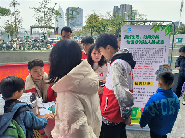 此次志愿服務(wù)活動(dòng)采用現(xiàn)場(chǎng)教學(xué)和有趣的垃圾分類挑戰(zhàn)賽等方式,向市民傳播垃圾分類的科學(xué)知識(shí)和綠色環(huán)保的生活理念。垃圾分類達(dá)人挑戰(zhàn)賽現(xiàn)場(chǎng)氣氛熱烈,答題挑戰(zhàn)隊(duì)伍排成了長(zhǎng)龍,每位參與者都躍躍欲試、反復(fù)操練,期望在分類游戲挑戰(zhàn)賽中取得高分和心儀的獎(jiǎng)品。